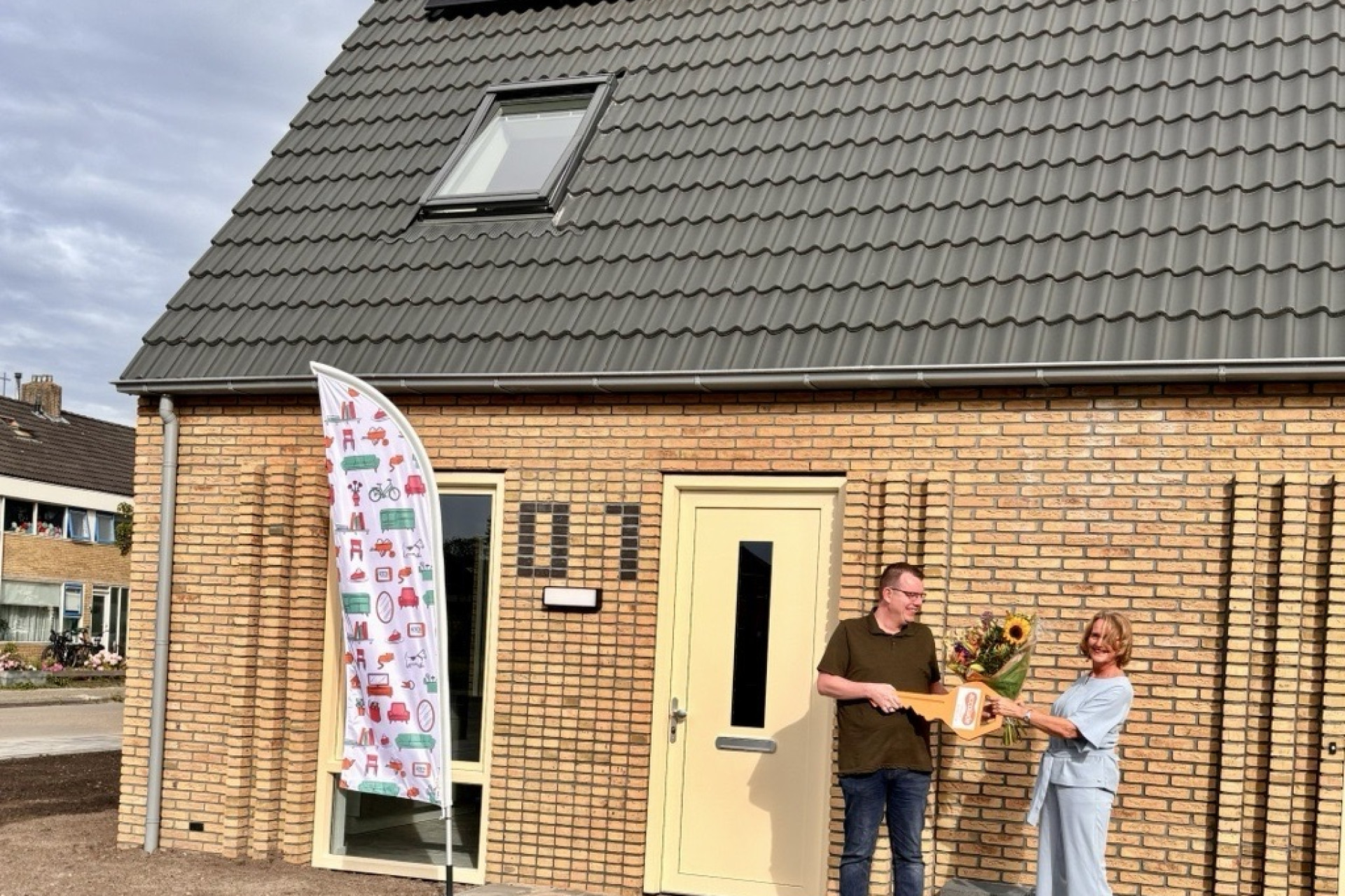Op donderdag 6 juni ontving familie Otter als eerste de sleutel van hun nieuwe woning aan de Azaleastraat in Heerenveen. Ze kregen de sleutel uit handen van Elze Klinkhammer, onze directeur-bestuurder.