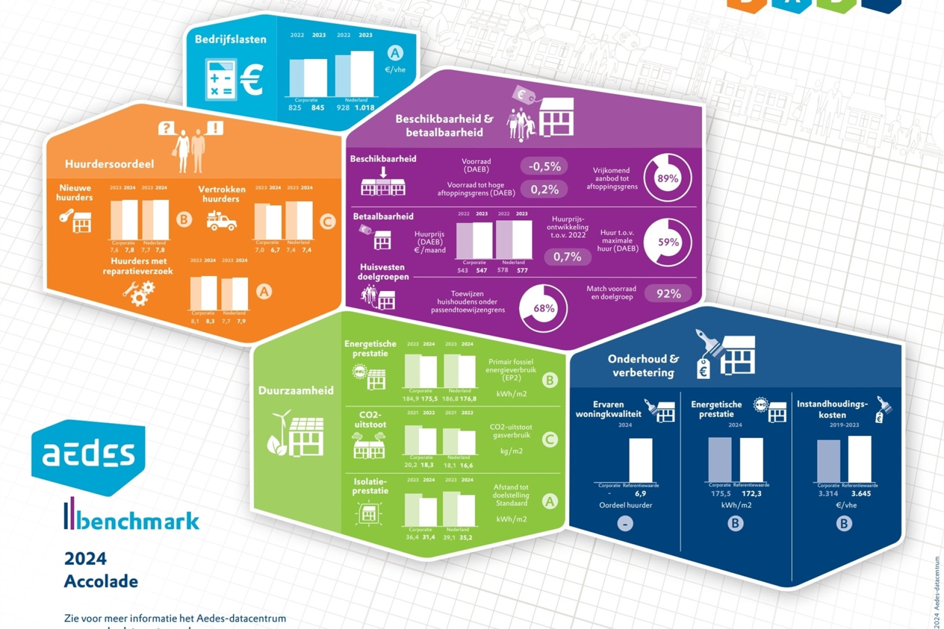 Ieder jaar voert brancheorganisatie Aedes een benchmark uit. De prestaties van woningcorporaties worden op verschillende vlakken vergeleken.